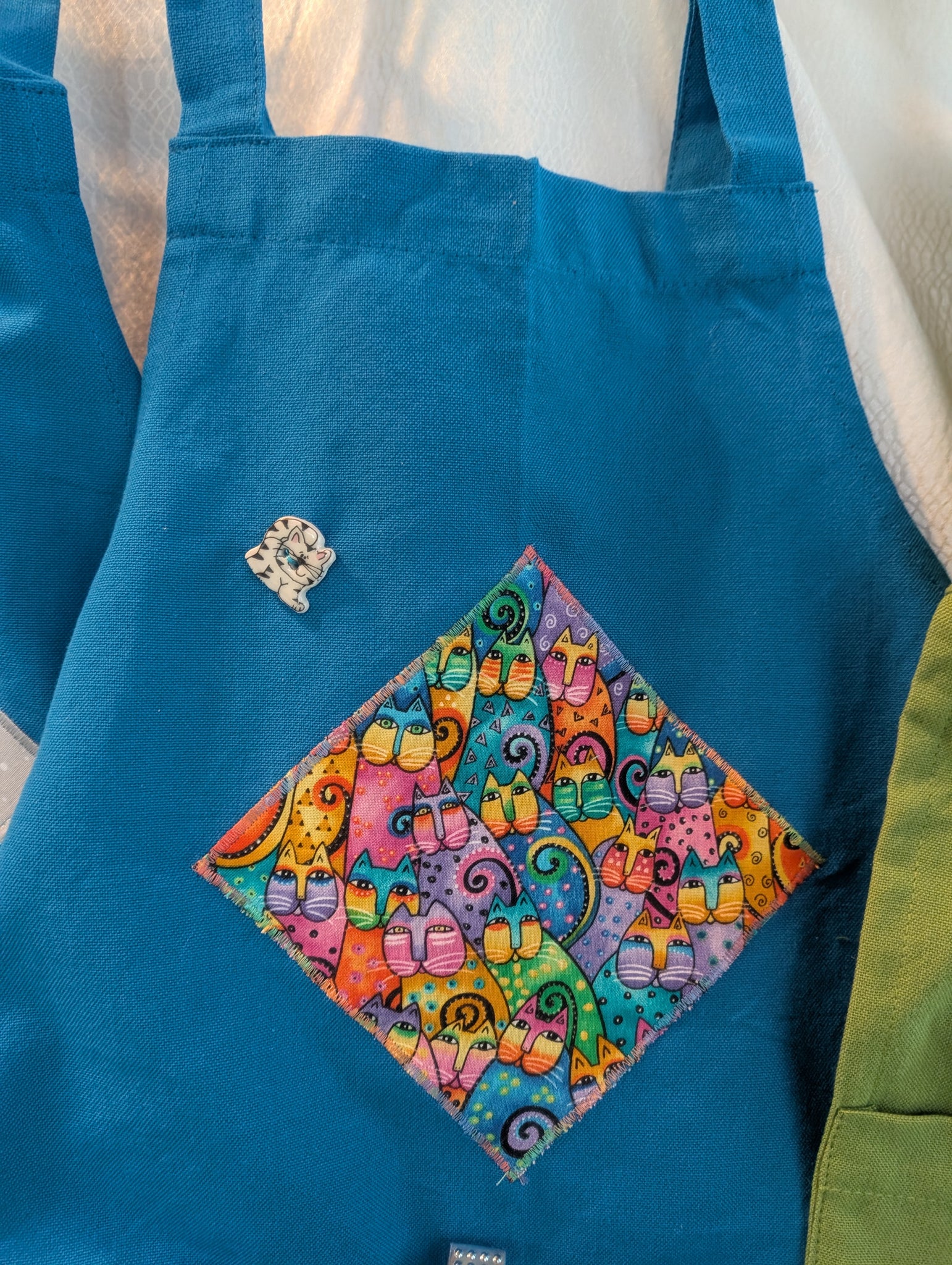 If you want a custom (made from scratch) apron, please order from fabrics on the website, not in these apron pictures, as the fabrics may not be available.