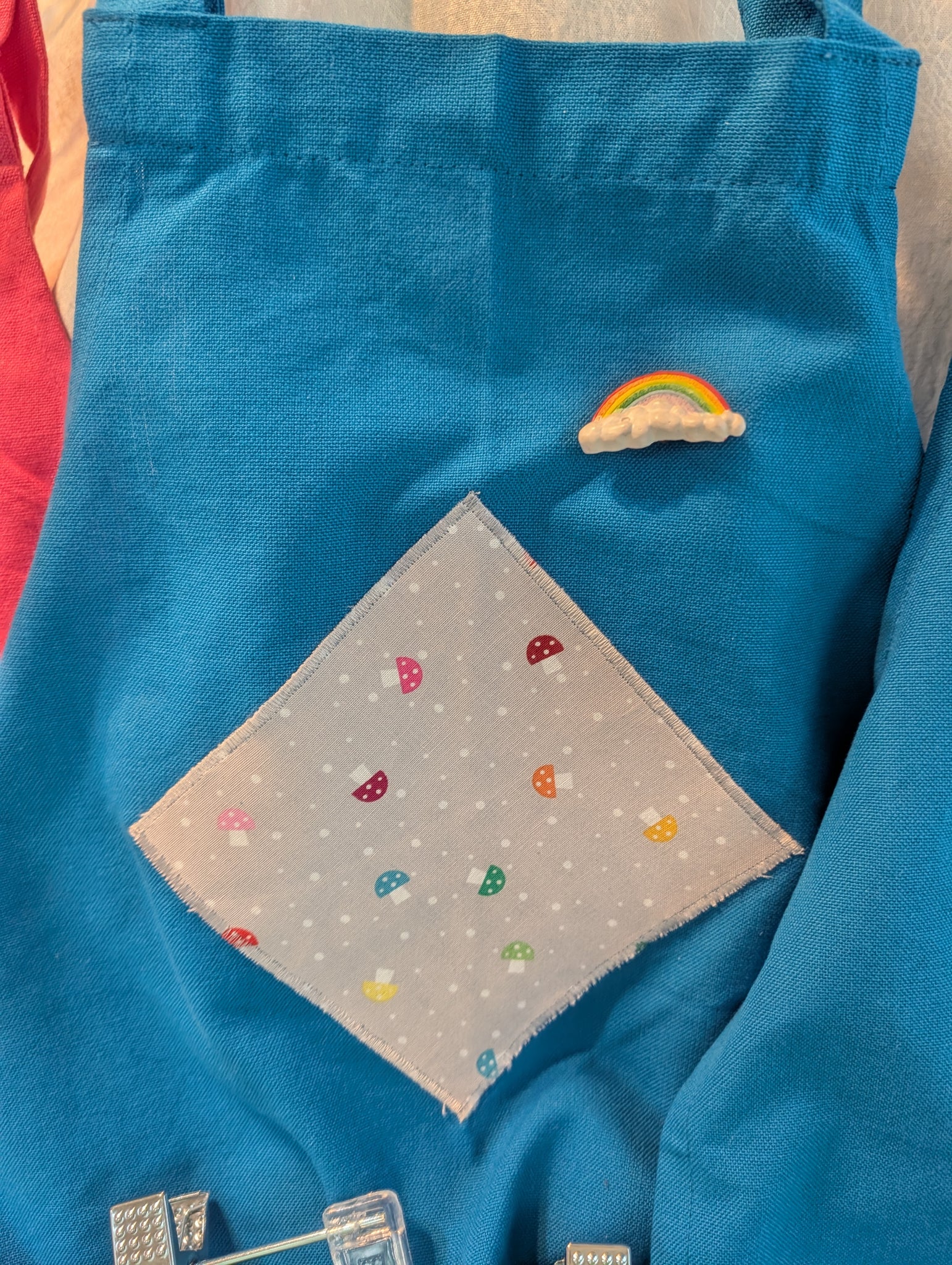 Canvas Apron Child 14 inches x 19 inches. Select from the pull-down menu for aprons in stock. For a custom apron, let me know what cotton color you prefer (shown in images), and any fabric on the site for fabric - small scale is best.