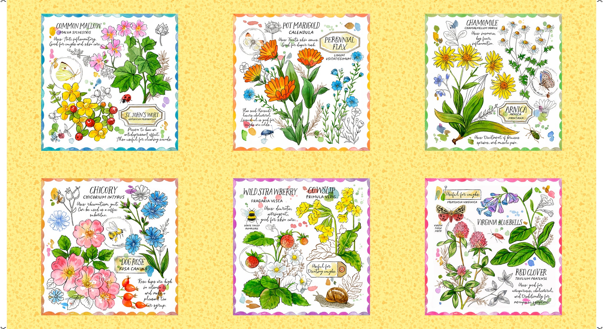 Showcase the love of horticulture and wellness with healing herbs and an array of blooming flora - truly a gardener’s delight. Collection includes a 36” panel and picture patches featuring herbal remedies we grow. Create projects for the kitchen and porch and don’t forget the perfect finishing touch to any garden - an easy sew apron! ©Jane Maday