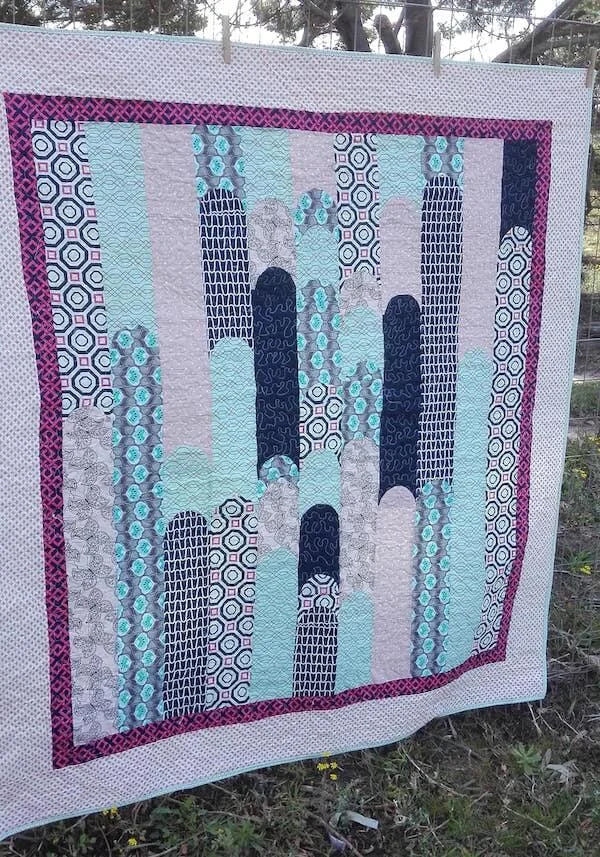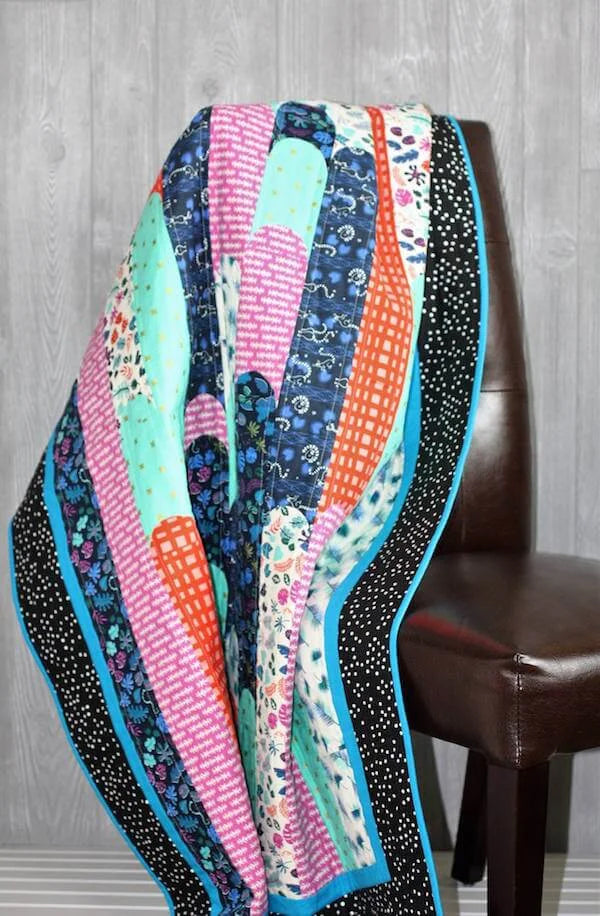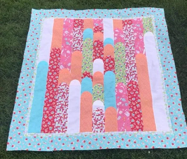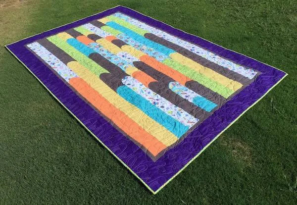 Hypersonic is the perfect quilt for a gender neutral theme! It makes a beautiful quilt top from 8 precious fabrics and shows them off in a flowing display.