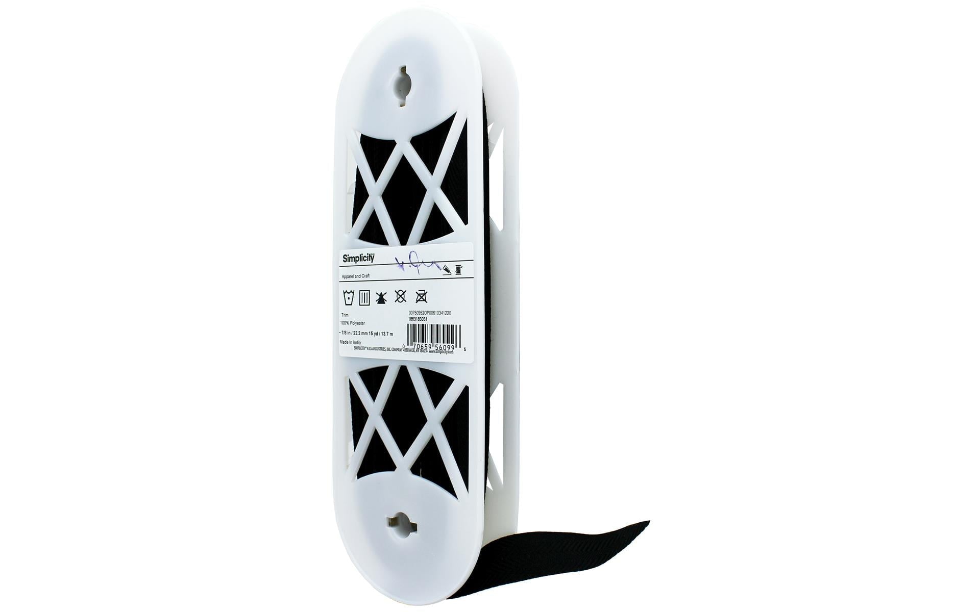Simplicity Trim Twill Tape 7/8 inch x 15 yard BlackUtility tape that can be used to bind straight edges or stay strips. Ideal for button reinforcement tie strings or drawstrings. 100% polyester.